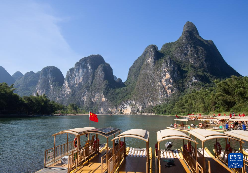 10月24日在广西桂林市阳朔县拍摄的漓江杨堤码头风光。