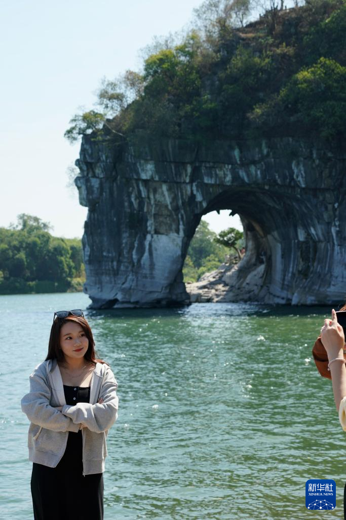 10月25日,游客在广西桂林市象鼻山景区拍照。