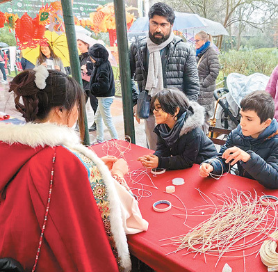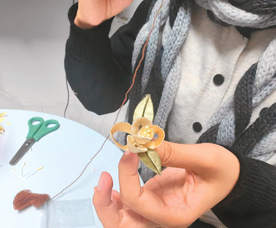 随着协会成员增多,协会活动的类型也越来越丰富。“我自己喜欢做手工,有一次我们和当地一家奶茶店合作,办了‘缠花’活动。”李昕蔚说,“‘缠花’是传统装饰类项目,主要用多色丝线在纸板或铜丝上缠绕出花等美术品,是国家非物质文化遗产。我们先在社交媒体上发布了活动预告,当天来的人不少,既有中国人也有法国人,大家和我一起学习‘缠花’,最后的成品可以用作簪子或发饰。令我印象深刻的是一名法国女生,她说‘缠花’很难,但她喜欢审美和创作,在不断雕琢细节后,她最后做出的作品十分漂亮。”