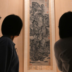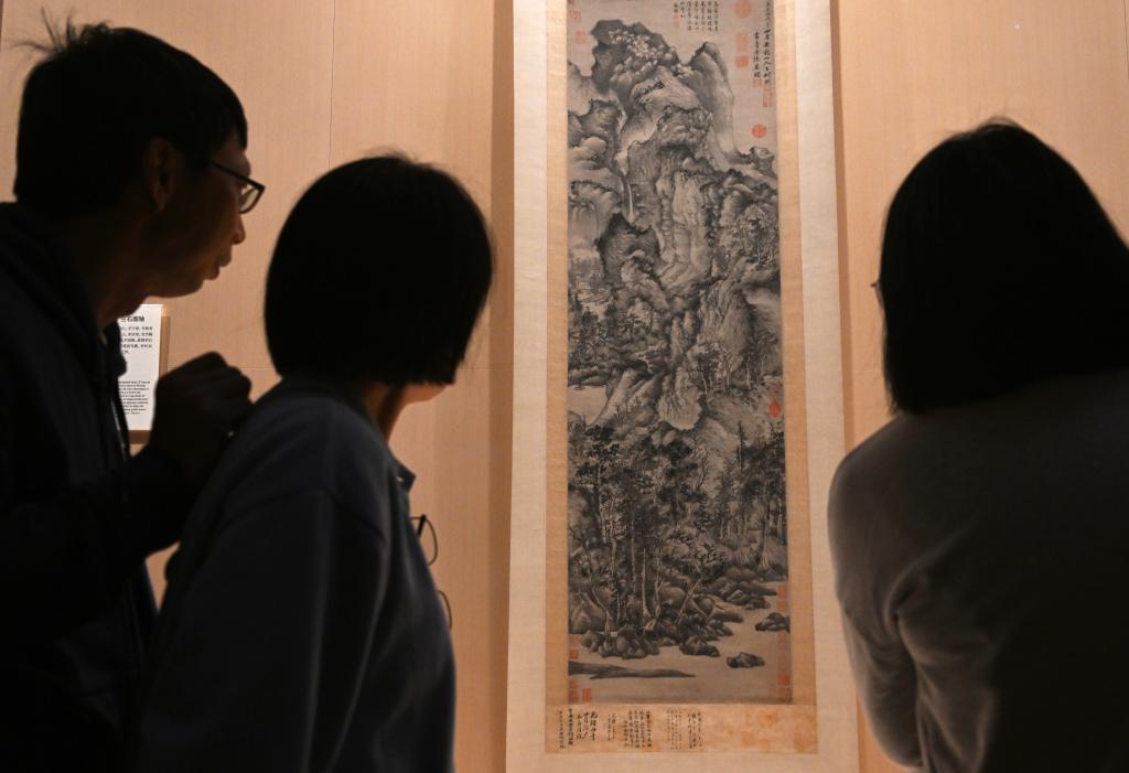 11月14日,在上海博物馆东馆中国历代绘画馆,观众在元代王蒙的《青卞隐居图》前驻足观看。