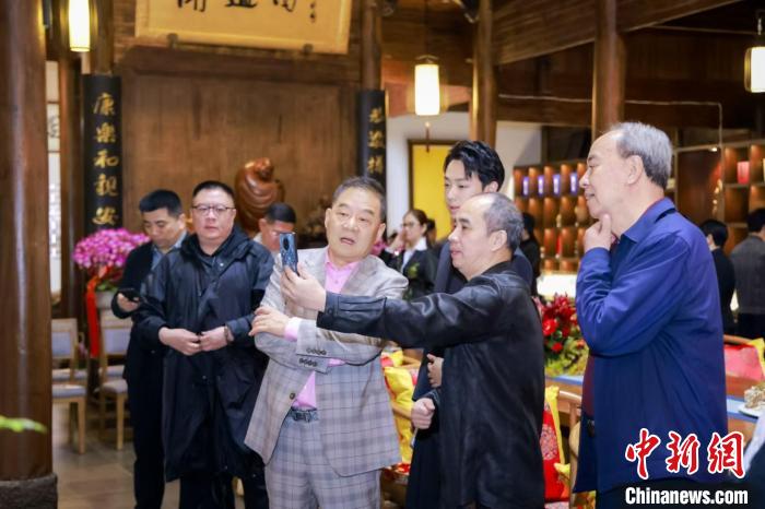王国平以VR方式让观众进入画作中的禅境。(中新网记者 陈静摄)