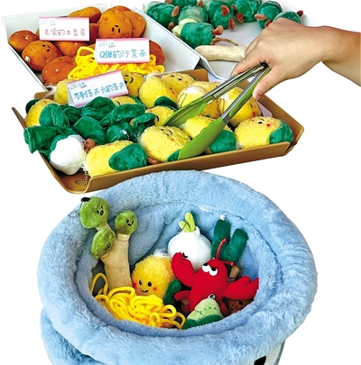 在“沉浸式打包”的层面上,万物皆可成毛绒玩具,皆可“过家家”式打包。其实,这种本土化毛绒文创产品还有不少。比如,山西太原的“刀削面”、苏州系着“防逃逸”毛线绳的“阳澄湖大闸蟹”、宁波的“中药食材”、厦门的“公仔沙茶面”以及新疆的“烤馕”等等。它们的价格也相对亲民,武汉平价版“菜市场”中的蔬菜瓜果玩偶一律7.99元一只, “阳澄湖大闸蟹”25.8元一只,“绒馍馍”19.9元一个。