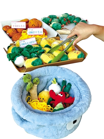 今年7月,甘肃省博物馆紧跟“沉浸式打包”营销的风潮,结合同样爆火的天水麻辣烫,推出了麻辣烫系列毛绒文创产品:娃娃菜、香菇、蟹棒,还有天水炸洋芋丸子。顾客选完心仪的“菜品”后,店员会为其现场“烫菜”。