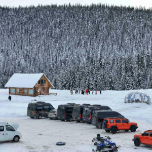 车辆随着曲折的山路在白雪间蜿蜒前行,透过覆雪的林木,远远望去,灵动跳跃。据喀纳斯景区公安局交警大队统计,今年入冬后,进入禾木村的车辆每天约有1000辆次,人员约3000人次。