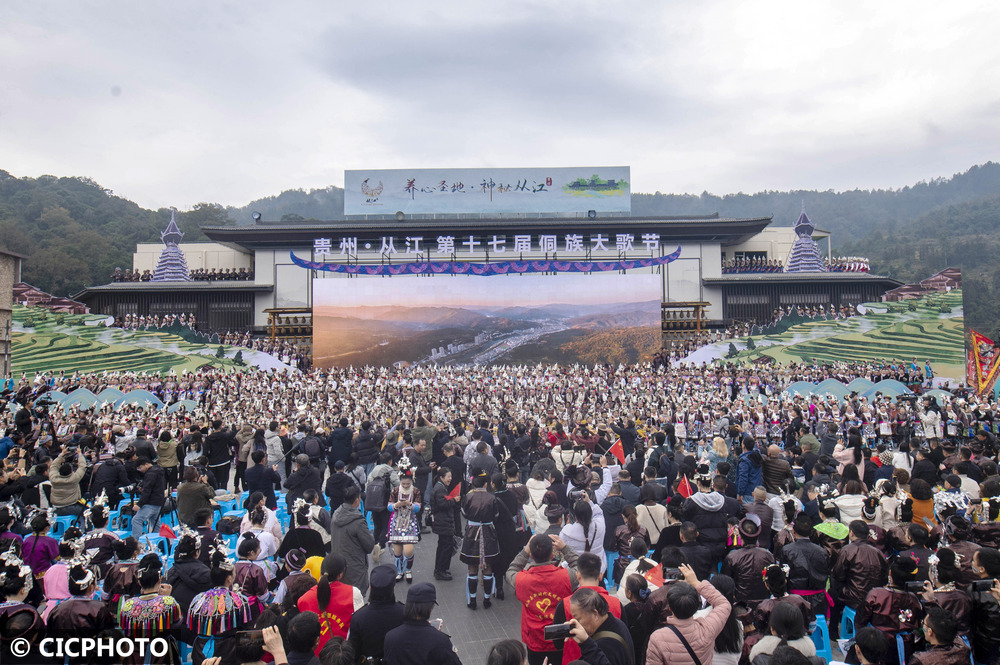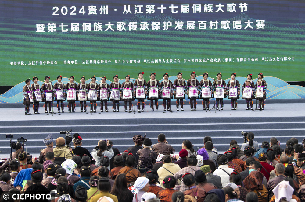 ↑2024年11月30日在贵州省黔东南苗族侗族自治州从江县拍摄的侗族大歌百村歌唱大赛现场。CICPHOTO/吴德军 摄