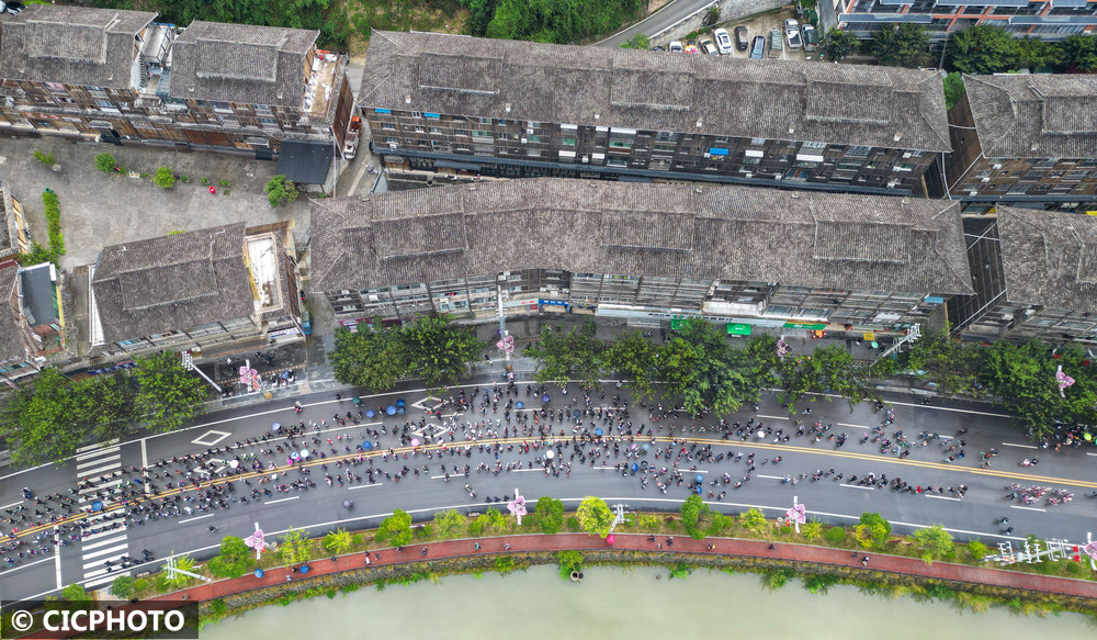↑2024年11月30日,人们在贵州省黔东南苗族侗族自治州从江县参加第十七届原生态侗族大歌节巡游活动。(无人机照片)CICPHOTO/卢忠南 摄