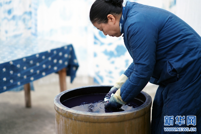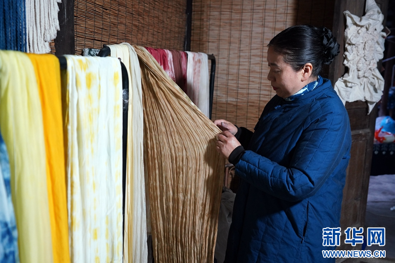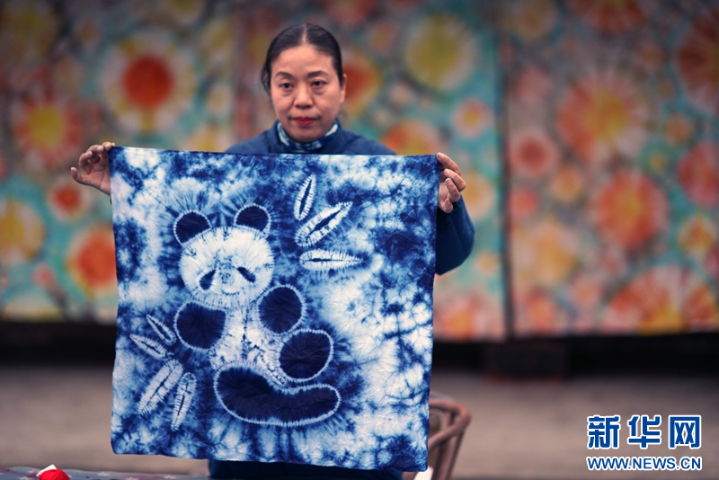 峨眉扎染传统技艺是古代四川扎染(蜀缬)的重要分支,有着悠久的历史,峨眉扎染传统技艺被列入四川省第六批省级非物质文化遗产。据峨眉扎染传统技艺传承人王永清介绍,峨眉扎染染料是从植物中提取,常用的植物有三十多种,四川峨眉山丰富的植物资源为这项技艺的传承提供了坚实的基础。(新华网黎涛摄)