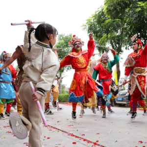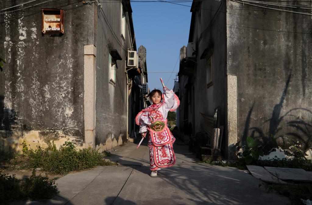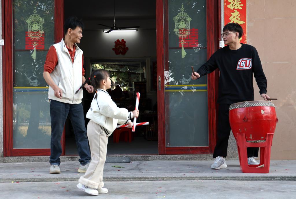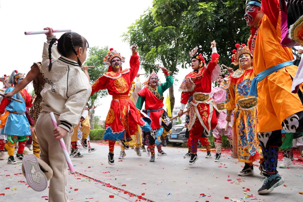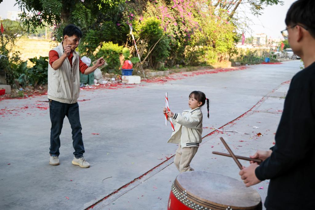 12月9日,广东省汕头市潮阳区贵屿镇玉窖村举办民俗活动,5岁女童庄恩琪手持英歌槌,跟随鼓点节奏与当地的英歌队员一同起舞,动作有力且充满韵律,赢得了在场观众阵阵掌声。