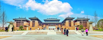 四川省成都市双流区广袤的田野间,一座汉唐风格宫殿式建筑映衬在牧马山麓的花海里。高耸的夯台承托着古朴庄严的楼宇,四座对称的汉阙式楼台托举着几个笔力遒劲的大字:“广都博物馆”。