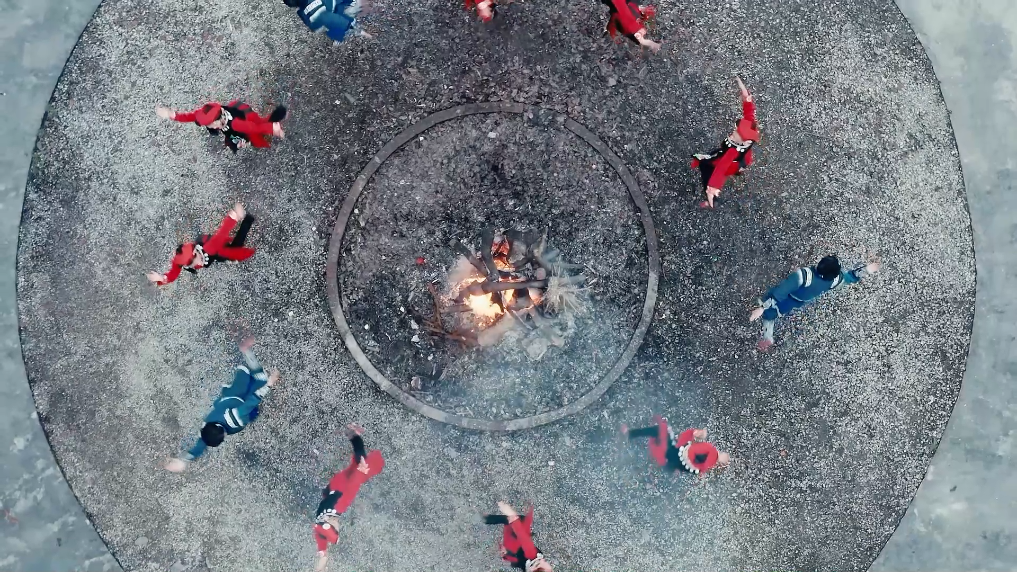 穿上云云鞋、披上羊皮褂,左手持鼓,右手执槌,旋转、吆喝……刚从幼儿园放学的小耶格,跟着身为非遗传承人的舅爷,大大方方地在当地街头练习羊皮鼓舞,颇有专业舞者风采。