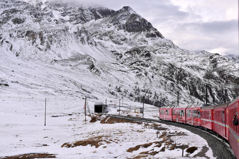 在海拔2256米的瑞士阿尔卑斯山腹地,奥斯皮齐奥·贝尔尼纳火车站静静伫立于白雪皑皑的冰原之上。每到冬季,这座火车站都会迎来众多滑雪者与游客,他们搭乘现代化水力发电列车,沿着有百年历史的阿尔布拉-贝尔尼纳铁路,在百年石桥和隧道间穿行,驶向雪山、冰川与山谷的深处。