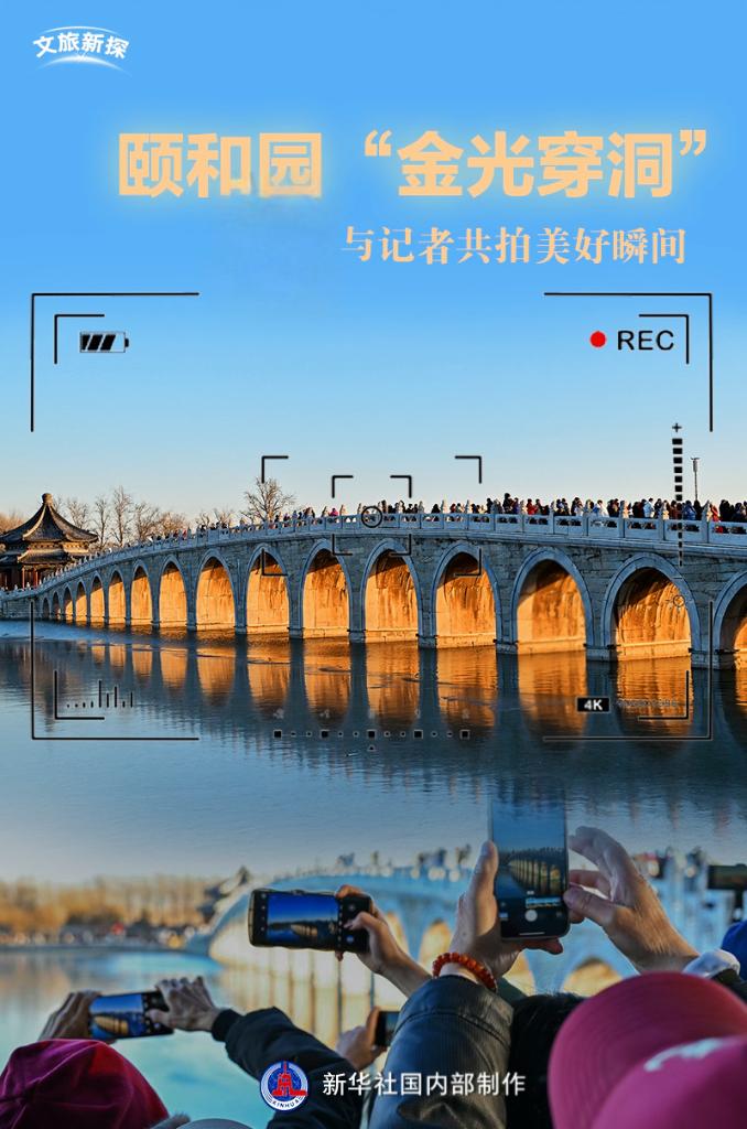 当一刹那“金光穿洞”到来时,每一位驻足观赏的游人都会屏息凝神,仿佛是历史的光影惊艳了今天的片刻时光。落日透过古老的桥洞,金光洒在每一尊石雕之上,桥影与水面交相辉映,成为了每年冬至颐和园最壮丽的景观。