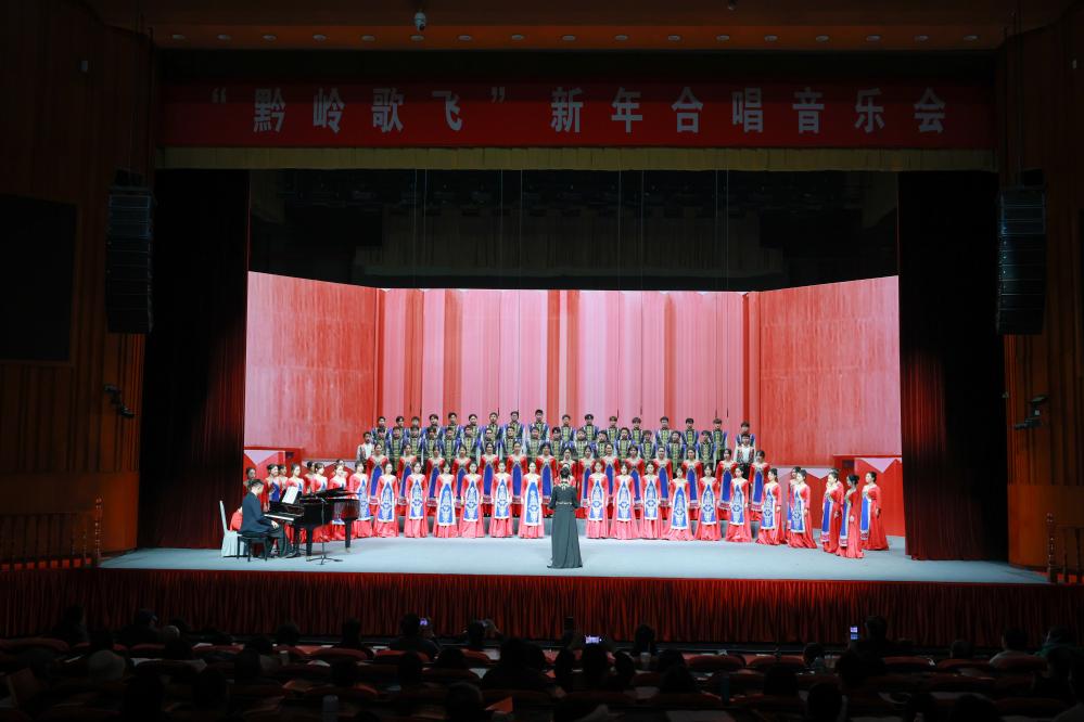 当日,“黔岭歌飞”新年合唱音乐会在贵州省贵阳市举行。贵州大学音乐学院爱乐合唱团等十余支合唱队伍为市民带来了一场独具民族特色的音乐盛宴。