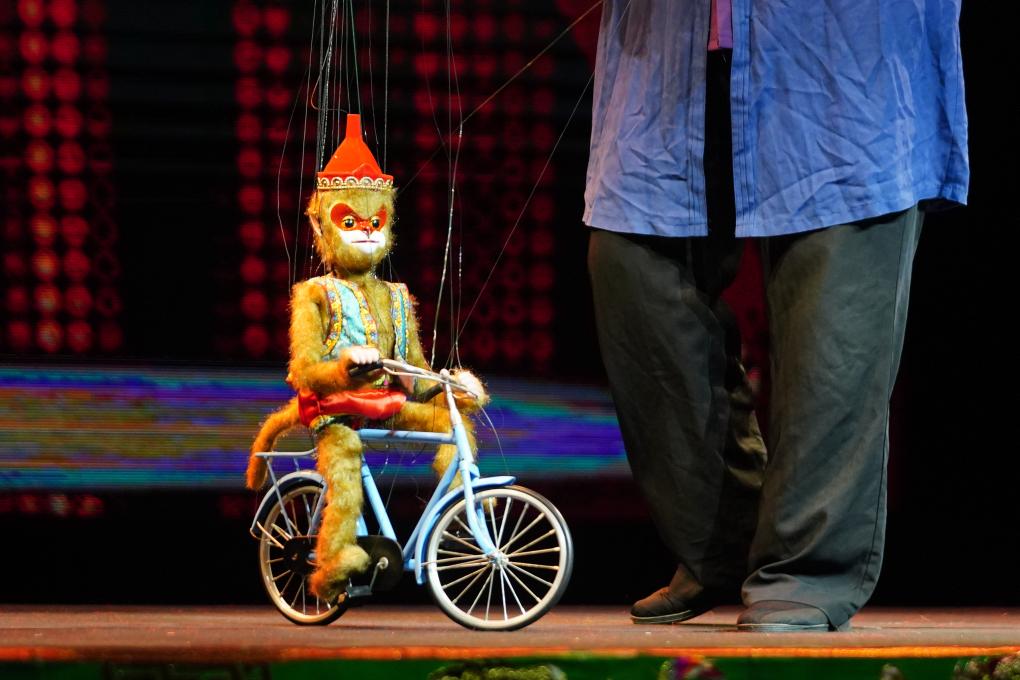还有许多巧思藏在细节中。《猴趣》演员沈苏革举起手中的猴子木偶说:“现在的舞台较大,为了让更多观众看到木偶头部细节表情变化,我们不断改良木偶细节。这个猴子木偶头的五官更加突出、嘴巴和眼睛的开合幅度更大、制作猴毛的材料更长、质感也更好,舞台上的表现力更强。”