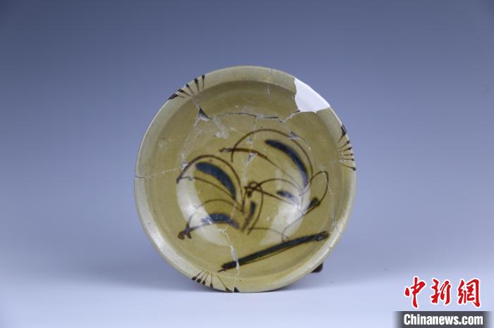 湖北龙凤庄遗址出土的唐代青釉褐绿彩瓷碗。 (湖北省文物事业发展中心供图)