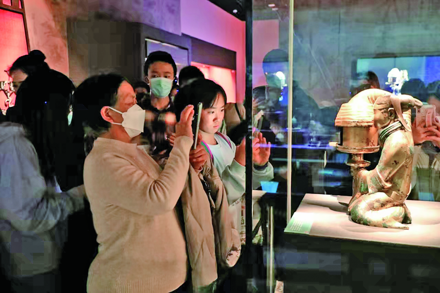 “去年暑假,我特意去河北博物院看长信宫灯,谁知它去上海‘出差’了。没想到这次在家门口能看到它。”一位来自天津的观众参观后说。借展文物中,来自河北博物院的长信宫灯、陕西省考古研究院的石甲胄、甘肃省博物馆的铜车马仪仗俑队、里耶(古城)秦简博物馆的九九乘法口诀表、湖南博物院的帛书《养生方》、四川博物院的执锸石俑等“明星”展品受到观众追捧。