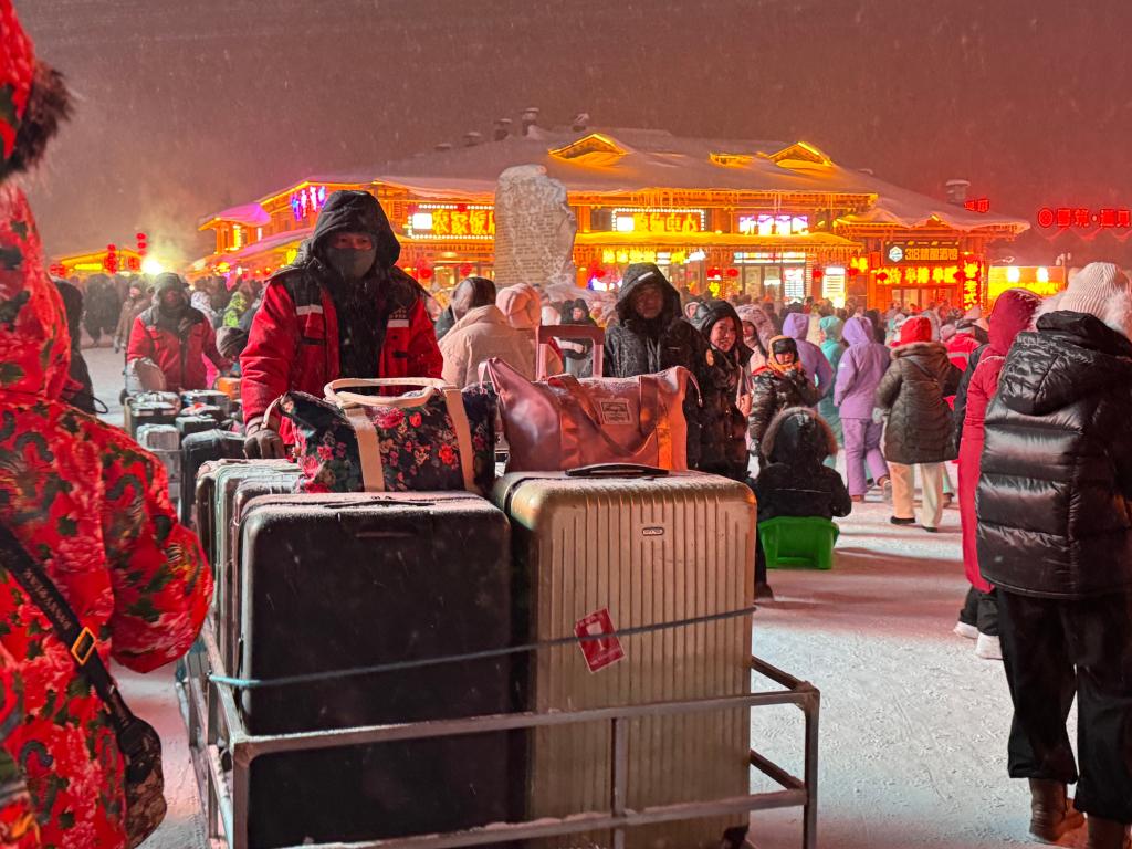 “雪地里不方便拉行李箱,景区也不允许车辆进入,所以我们就用手推车将行李送到游客们的民宿门口。”他说,这是今年新推出的免费服务。