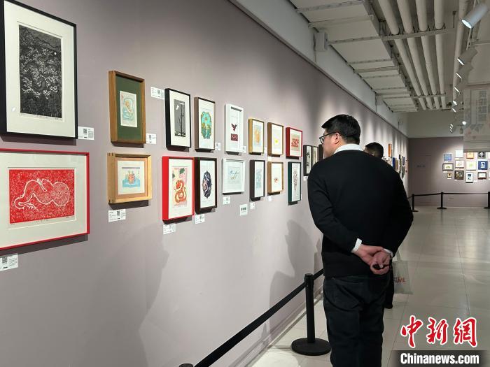 “灵蛇献瑞——央美乙巳蛇年贺年小版画展”1月1日起在北京展出。 中新社记者 国璇 摄