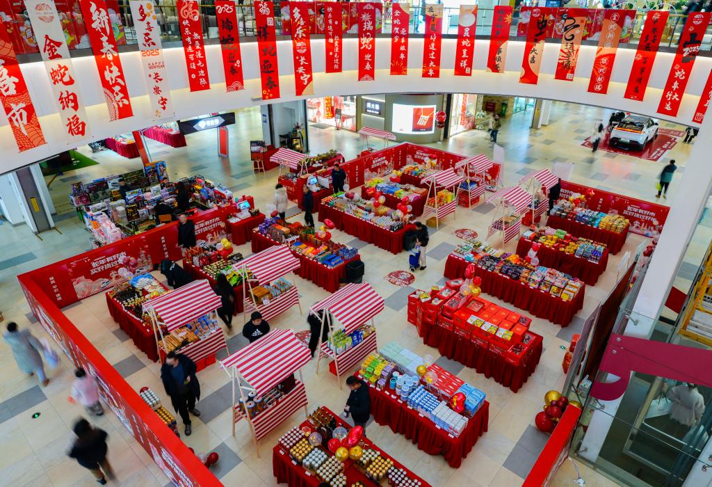 1月25日,市民在宁夏银川一家商场内选购年货。