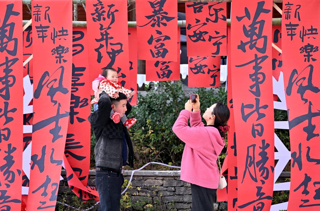 1月26日,游客在湖北宣恩游玩。