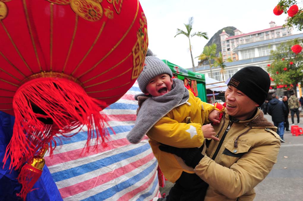 1月26日,人们在广西河池市罗城仫佬族自治县选购新春灯笼。