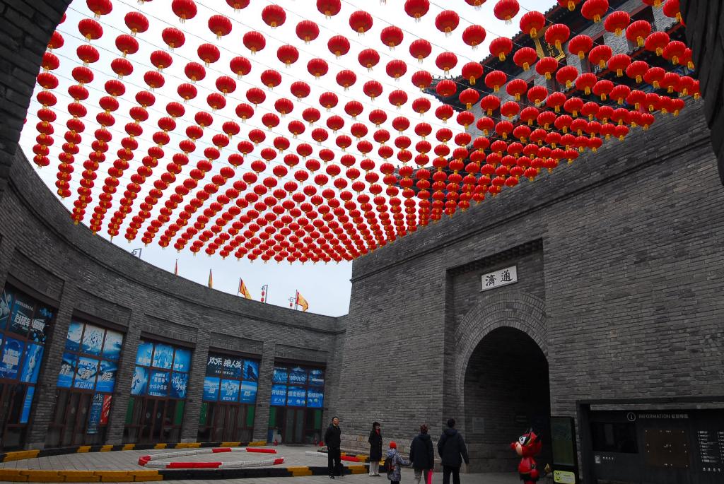 1月26日,人们在山东青岛即墨古城游览。