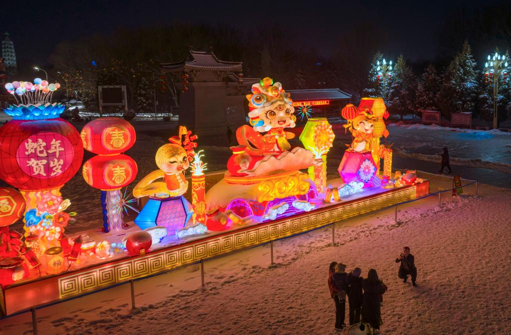 1月25日,市民在宁夏银川海宝公园游玩(无人机照片)。