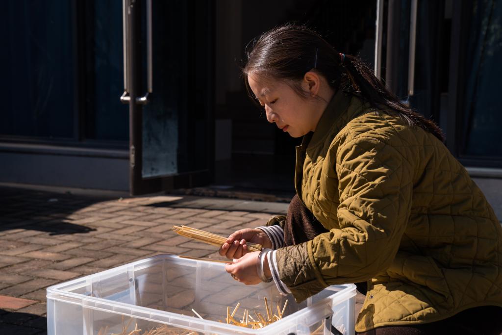 1月25日,杨洁在工作室分拣采集来的原色大麦秆。