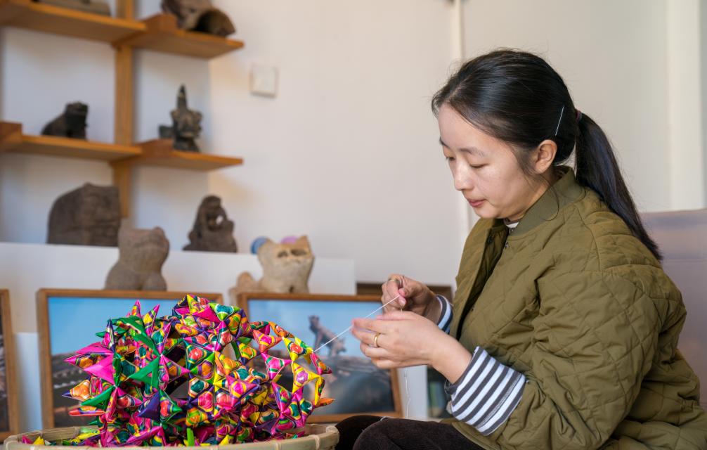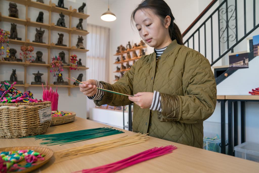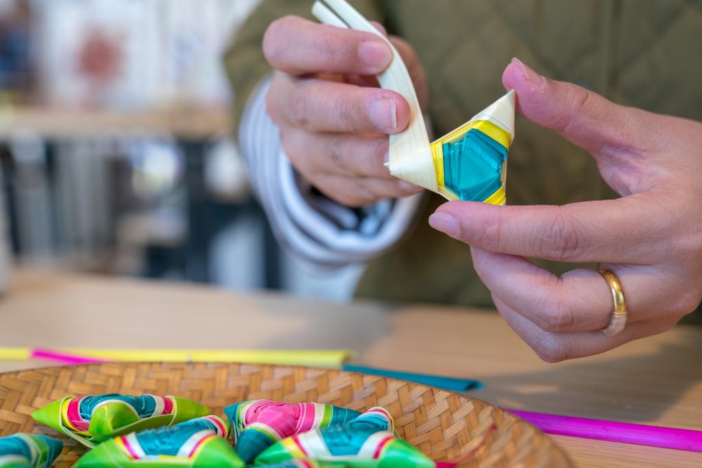 昆明市“90后”菱角编制艺人杨洁从云南艺术学院毕业后一直从事菱角编制工作。据她介绍,每年春节前夕她会很忙碌。这段时间,她会收到来自各地非遗展会和集市的邀请,也会按照客户要求定制节庆主题作品。
