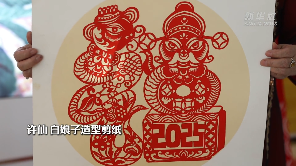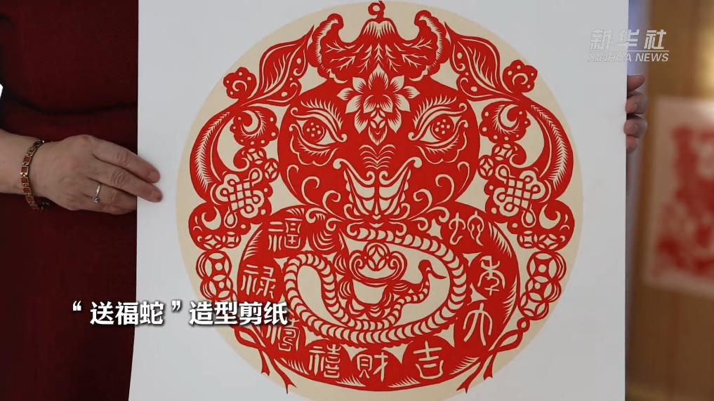 左手持红纸,右手握剪刀,65岁的伏兆娥时而微笑、时而凝神,沉浸在创作之中。“送福蛇”,许仙、白娘子,“蛇盘兔”……伏兆娥制作了多幅造型各异的剪纸作品庆祝新春佳节的到来。