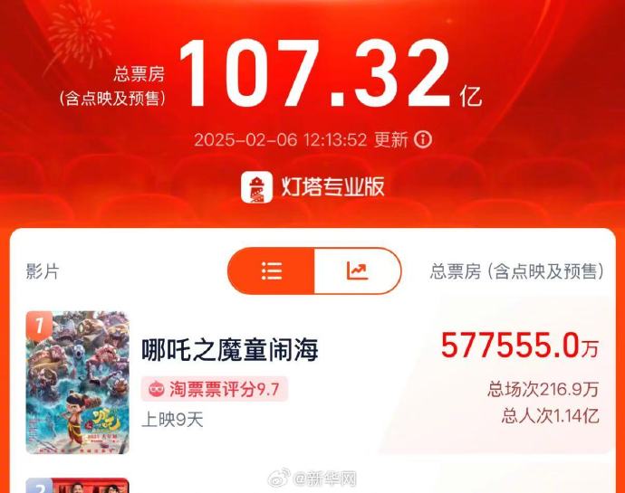 《哪吒2》登上中国电影票房总榜榜首-新华网