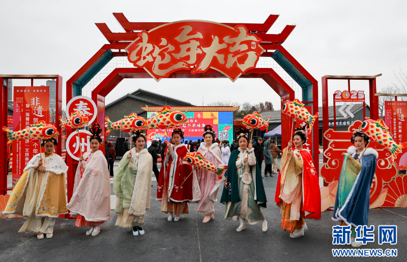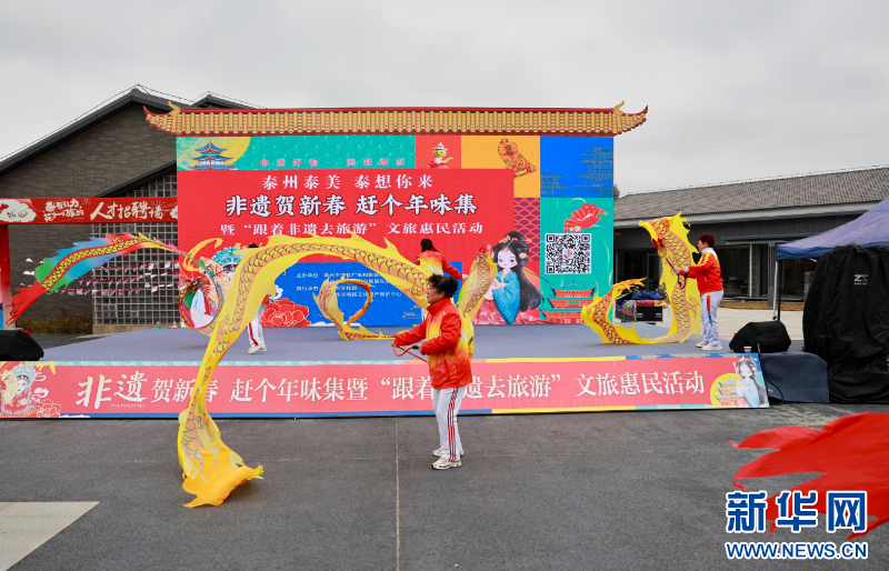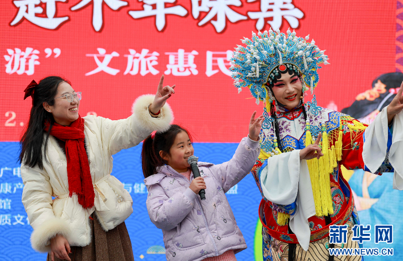 正月初四至初六,江苏省泰州市古盐运河广场人头攒动,一场传统与国潮相互交融的“年味大餐”引得市民游客流连忘返。舞台上,京剧、淮剧、茅山号子、撂石锁等节目精彩纷呈,引来阵阵喝彩。老百姓在家门口看上喜闻乐见的文艺节目,在喧天锣鼓和曼妙歌舞中共度新春佳节。(沙芳如 李蕊)