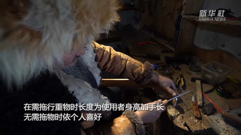 斯兰别克·沙合什家住阿勒泰市拉斯特乡,他从爷爷那里学会了制作毛皮滑雪板这项传统的技艺。