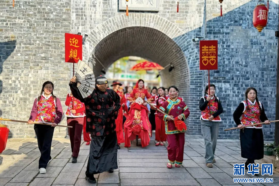 宜春靖安县西门古街举行的靖安婚俗表演现场。新华网发