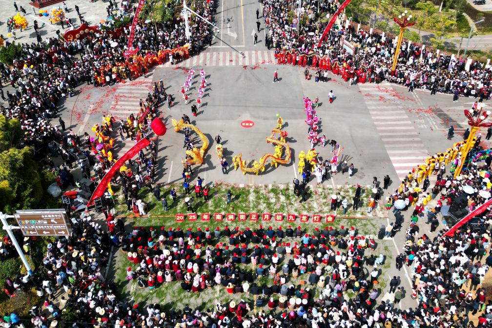 当日是农历正月初九,云南省大理白族自治州南涧彝族自治县举行龙灯会,来自全县8个乡镇的30多支表演队伍身着盛装齐聚南涧县城,闹龙灯庆新春。