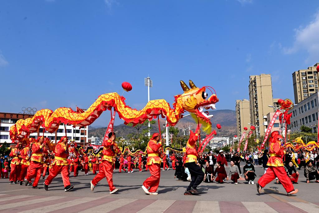 2月6日,人们在南涧县龙灯会上表演舞蹈。
