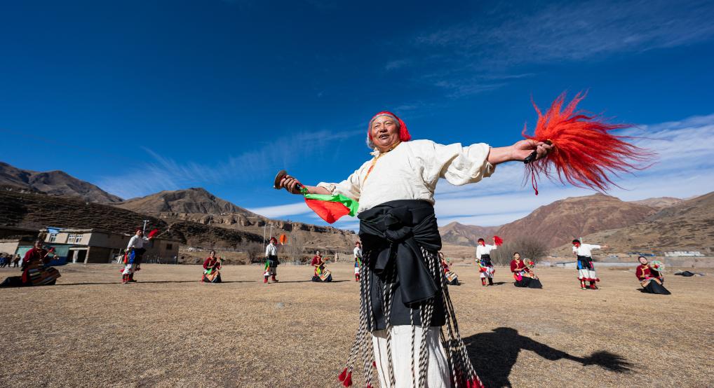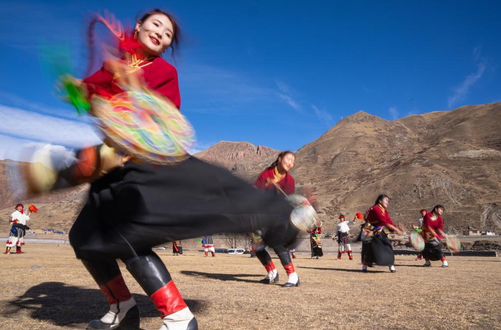 新华社拉萨2月9日电(记者黄耀漫)新年伊始,在西藏昌都市丁青县尺犊镇的草坝上,乌巴村文艺演出队正在热火朝天地排练。尽管寒风凛冽,但激昂的鼓点和热烈的音乐,让这片土地充满了生机与活力。
