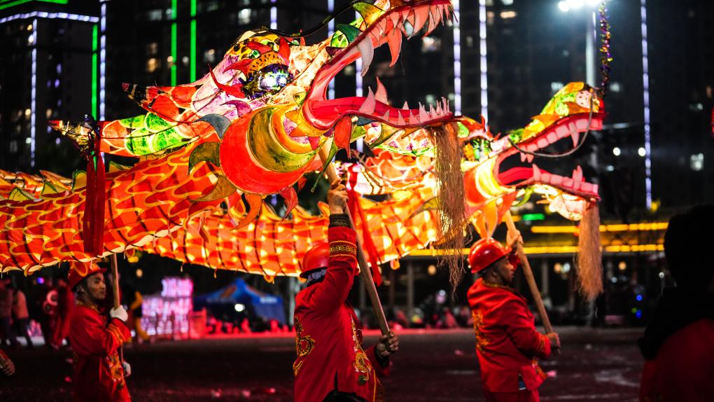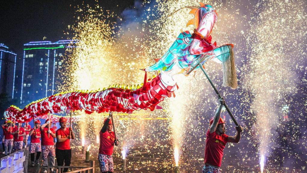 当日,贵州省黔东南苗族侗族自治州台江县举行2025年苗族“舞龙嘘花”非遗展演系列活动。100多支舞龙队齐聚台江县城,欢庆元宵节的到来。2021年,苗族“舞龙嘘花”习俗入选国家级非物质文化遗产名录。