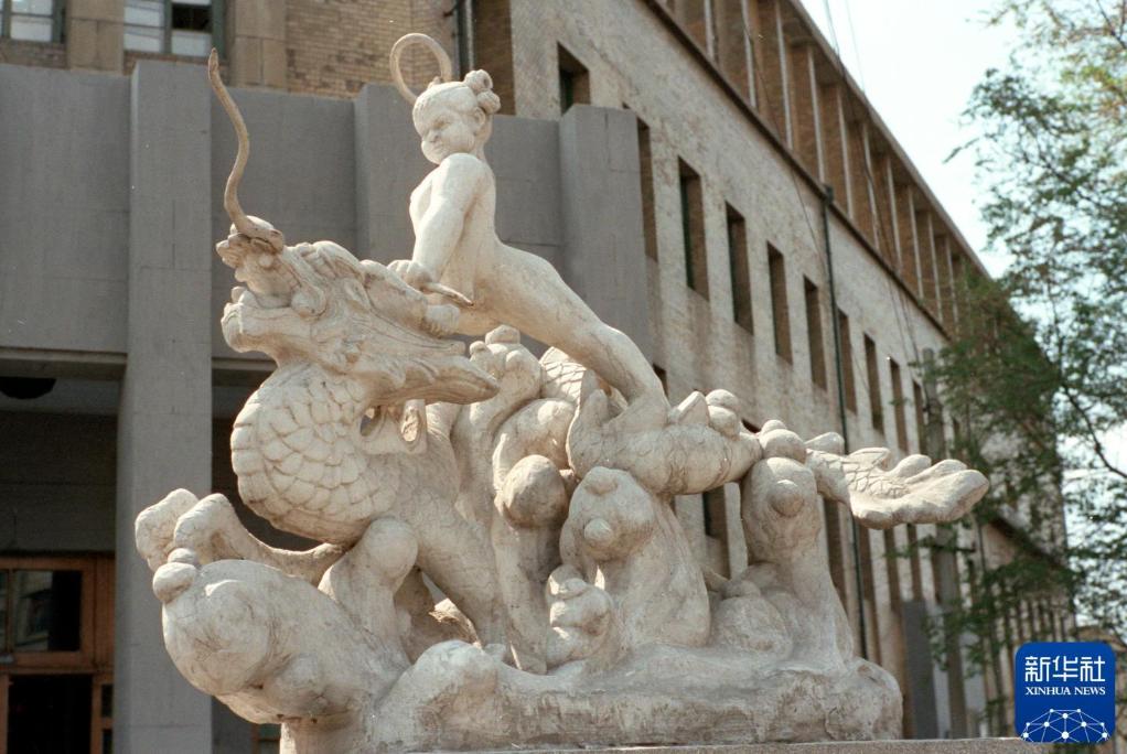 这是1985年拍摄的黑龙江省哈尔滨市街头雕塑《哪吒闹海》。新华社记者 许万育 摄