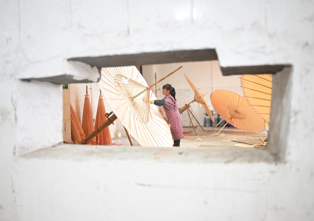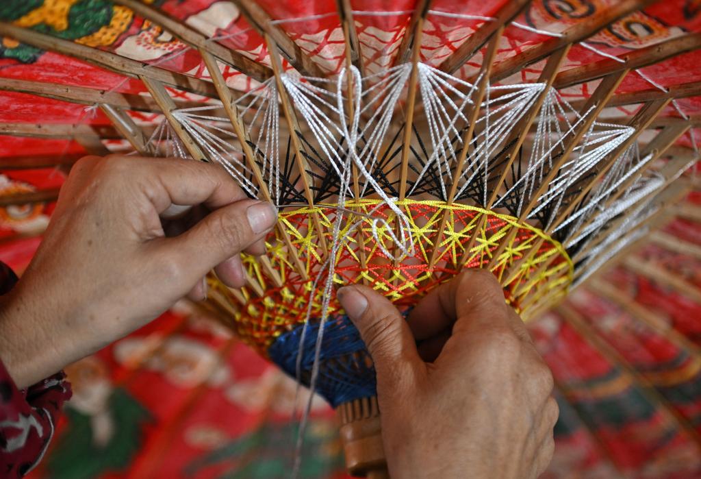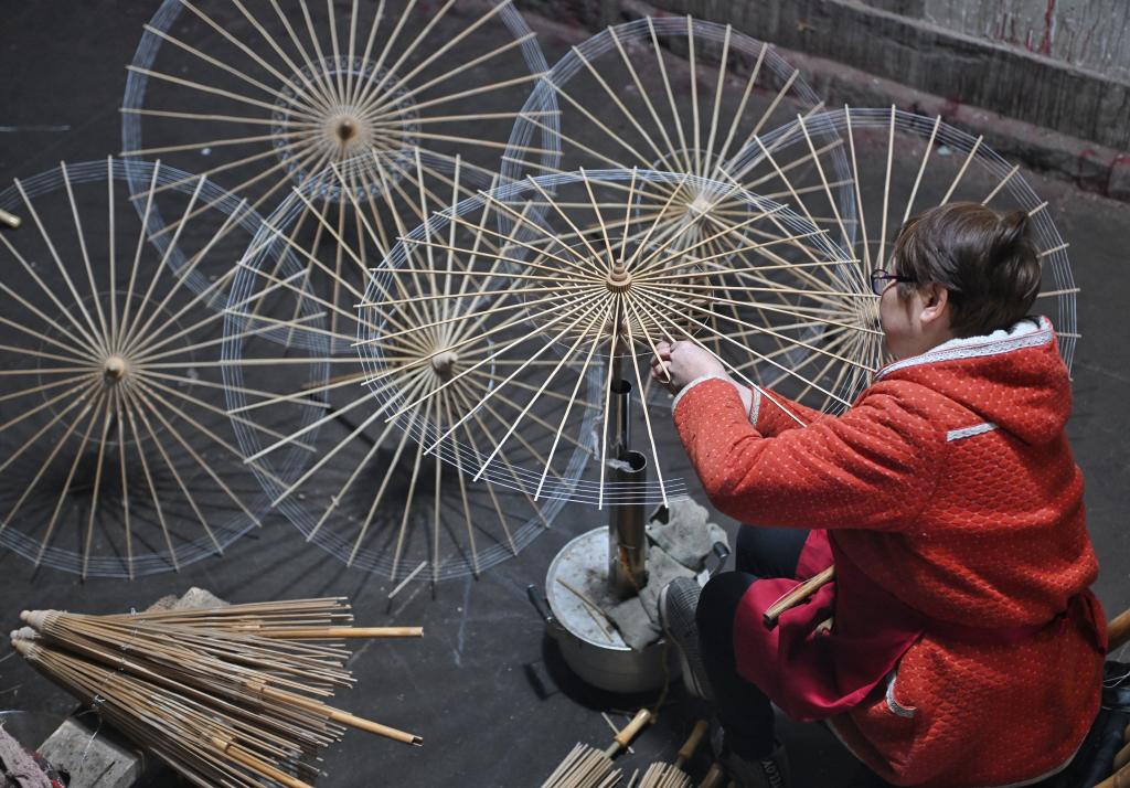 68岁的毕六福从小跟随长辈学习制伞技艺