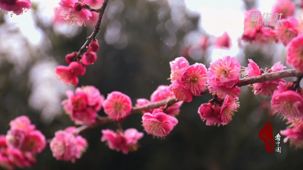 走进福建省宁德市寿宁县东区新城,园中的梅花已悄悄绽放,粉色花瓣宛若天边的云霞,如梦如幻。细雨如丝,绵绵不绝,雨水滑落在花瓣之上,仿佛化作璀璨的珍珠,更添几分灵动与雅致。