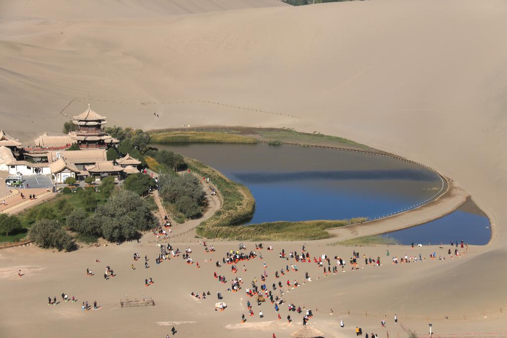 2024年10月3日,游客在甘肃省敦煌市鸣沙山月牙泉景区游览。张晓亮 摄
