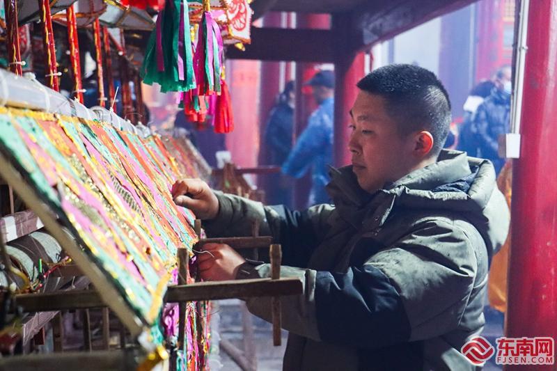 高照灯制作人肖志鹏为高照灯表演做准备 东南网记者 郑正华 摄