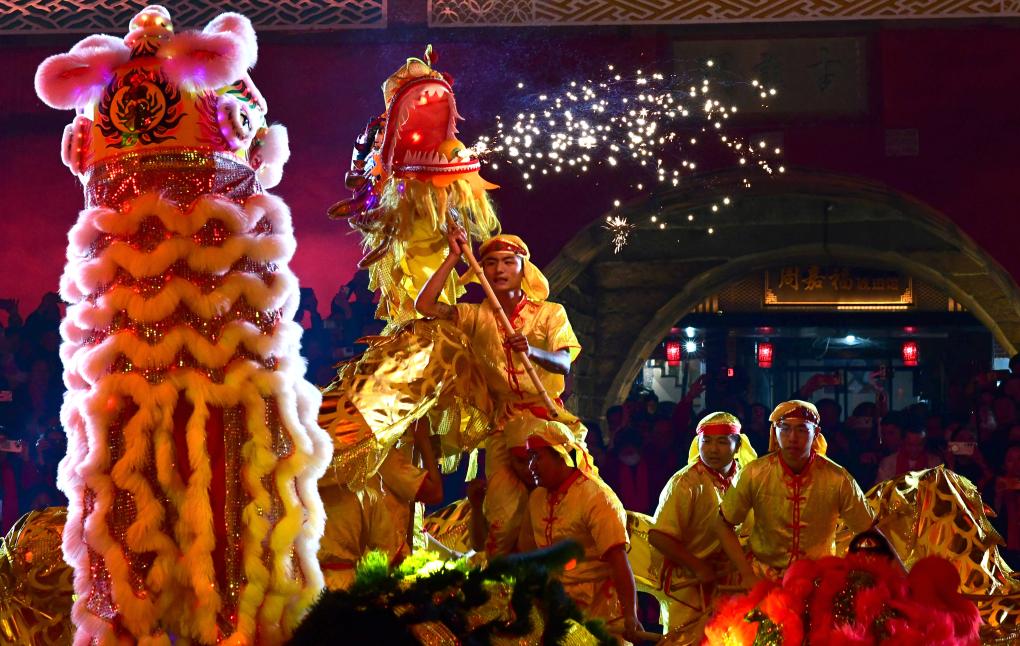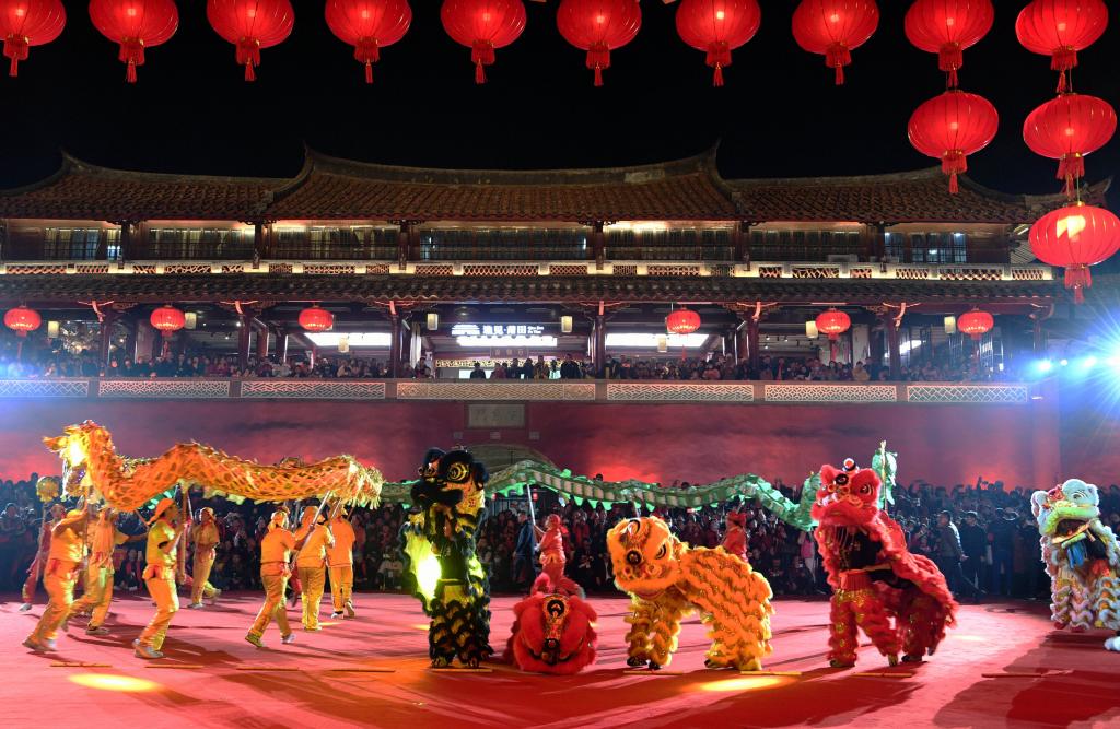 这是活动开场的舞龙舞狮表演(2月26日摄)