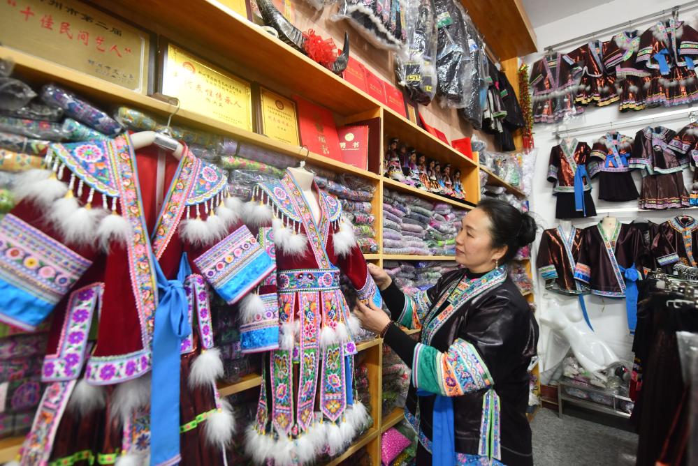 如今,杨洪英制作的苗族服饰和文旅产品,远销全国各地。随着当地文旅产业的发展,苗族服饰逐渐成为游客青睐的旅游商品。
