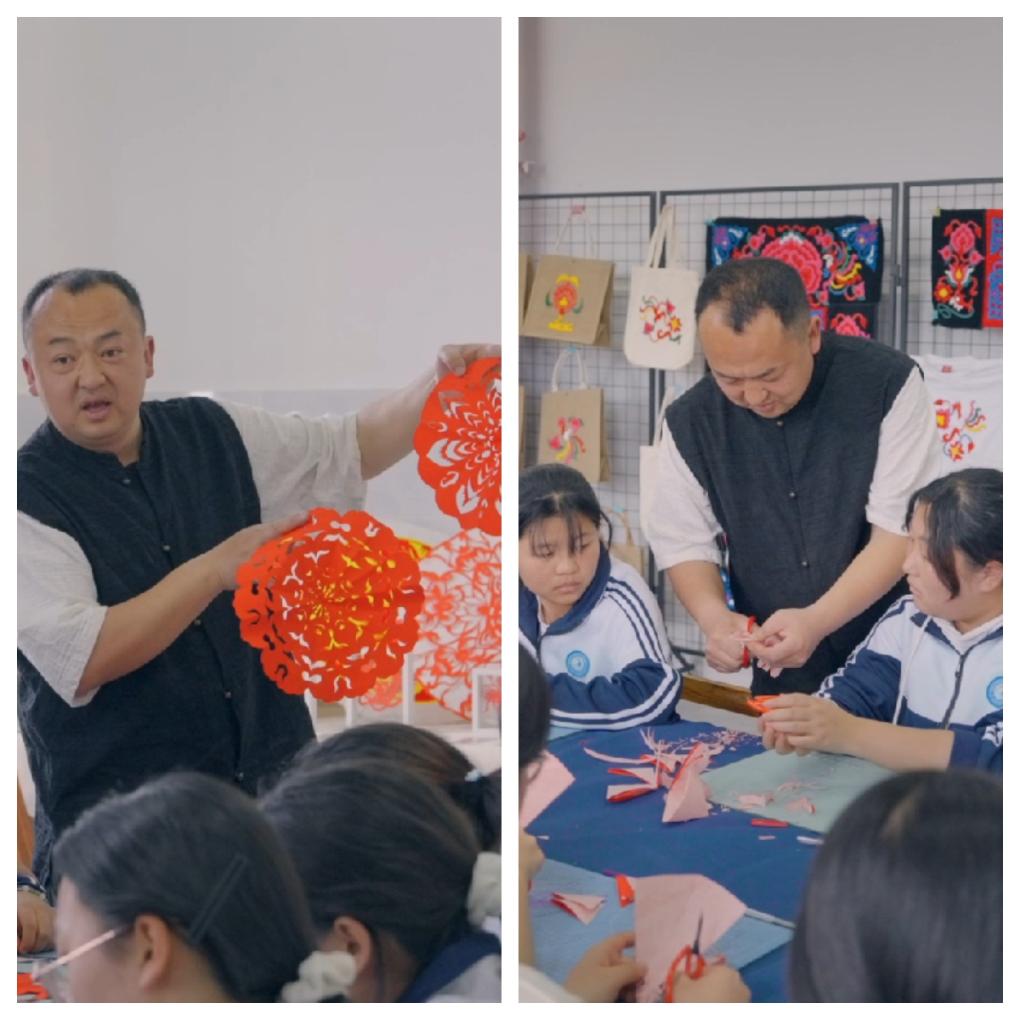 近日,昆明市晋宁区非物质文化遗产代表性项目剪纸区级代表性传承人张群再次走进校园非遗课堂,教授新一批学子剪纸技艺。