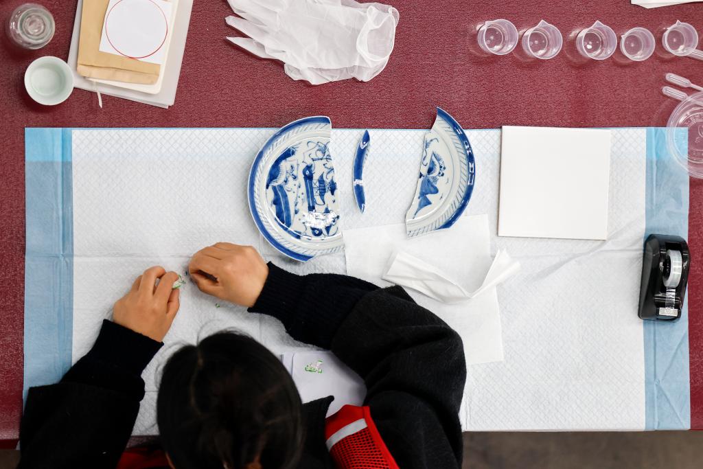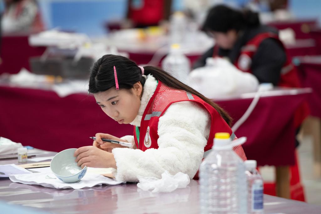 3月6日,参赛选手在参加陶瓷文物修复师项目比赛。