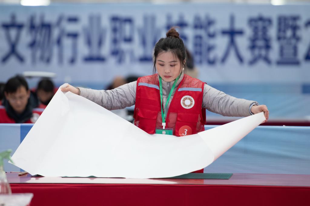 3月6日,参赛选手在参加纸张书画文物修复师项目比赛。