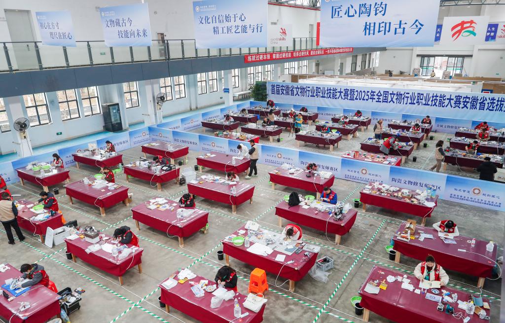当日,首届安徽省文物行业职业技能大赛暨2025年全国文物行业职业技能大赛安徽省选拔赛在安徽省黄山市举办。本次竞赛以“徽风营造 皖韵匠心”为主题,包含木作文物修复师、泥瓦作文物修复师、金属文物修复师、陶瓷文物修复师、纸张书画文物修复师、考古探掘工6个赛项,来自安徽省文博单位、相关高校和企业的100余名选手同台竞技。