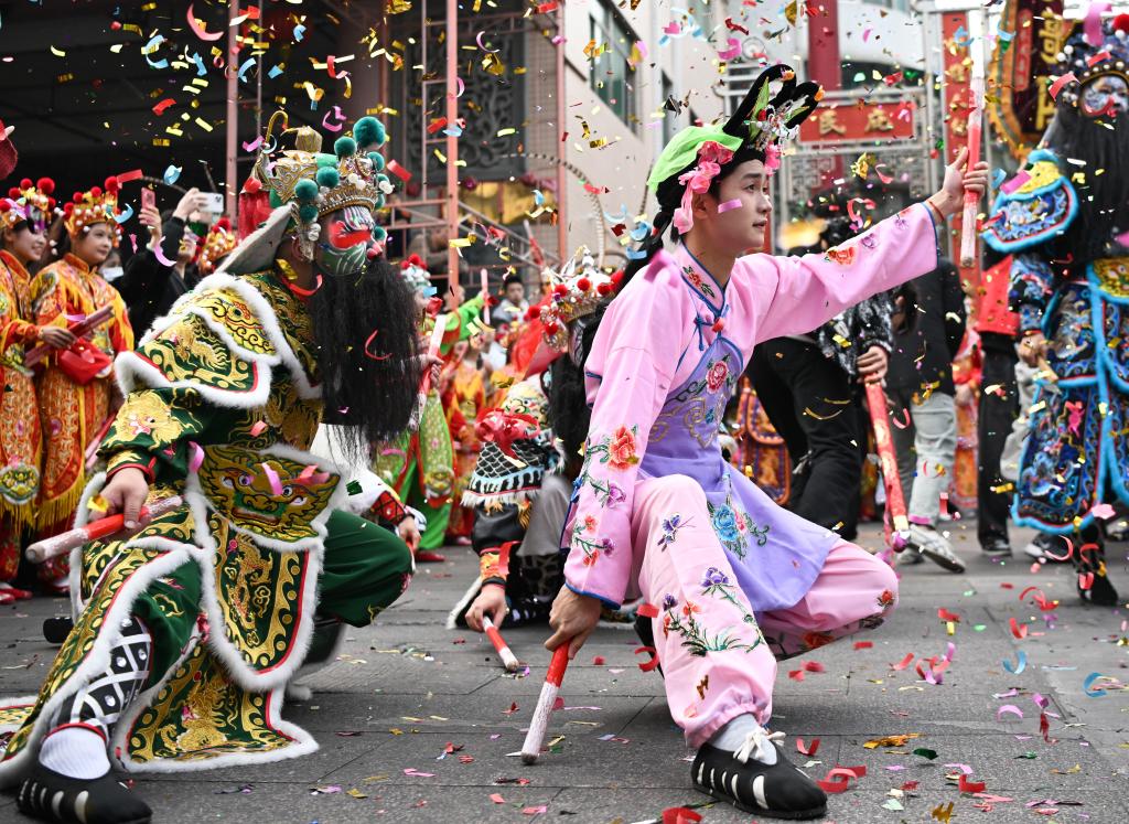 在广东汕头市潮阳区,塔馆英歌队队员在街头表演(2025年1月23日摄)。新华社记者 邓华 摄 以“悟空”“哪吒”为代表的